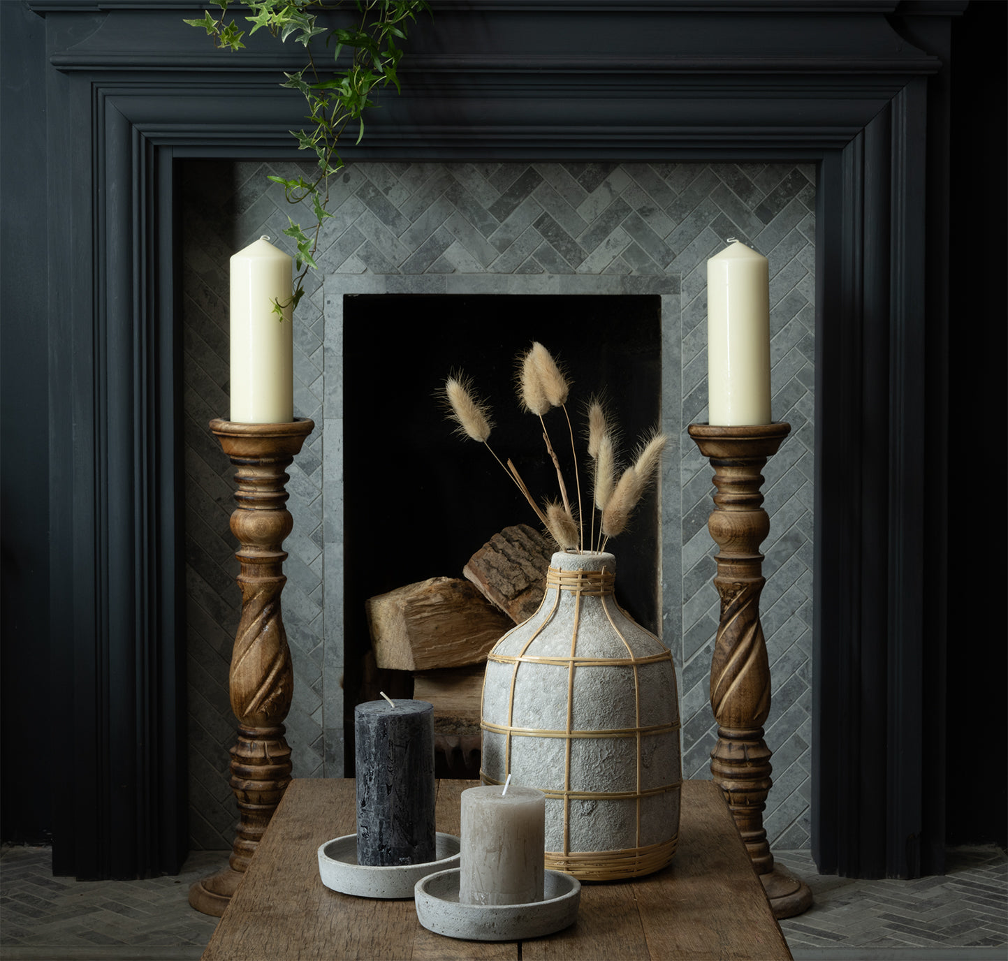 The Whoopy vase, this guy will bring intrigue and earthy tones to your space. This vase offers different textures, from the rough, volcano-like finish of the concrete to the neatly cased fine rattan for that homely, cozy feel. Perfect for housing a dried floral bouquet or as a standalone piece.