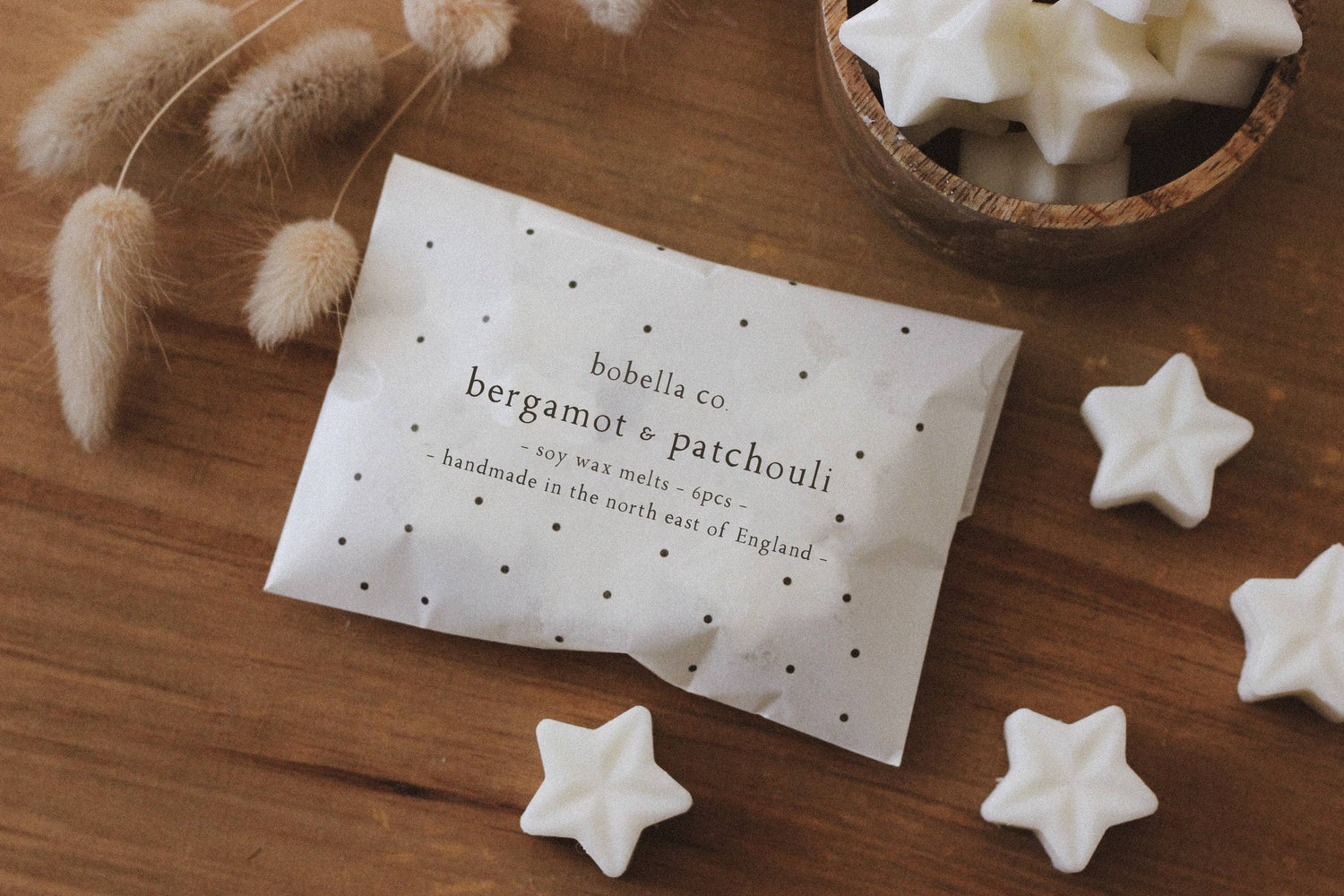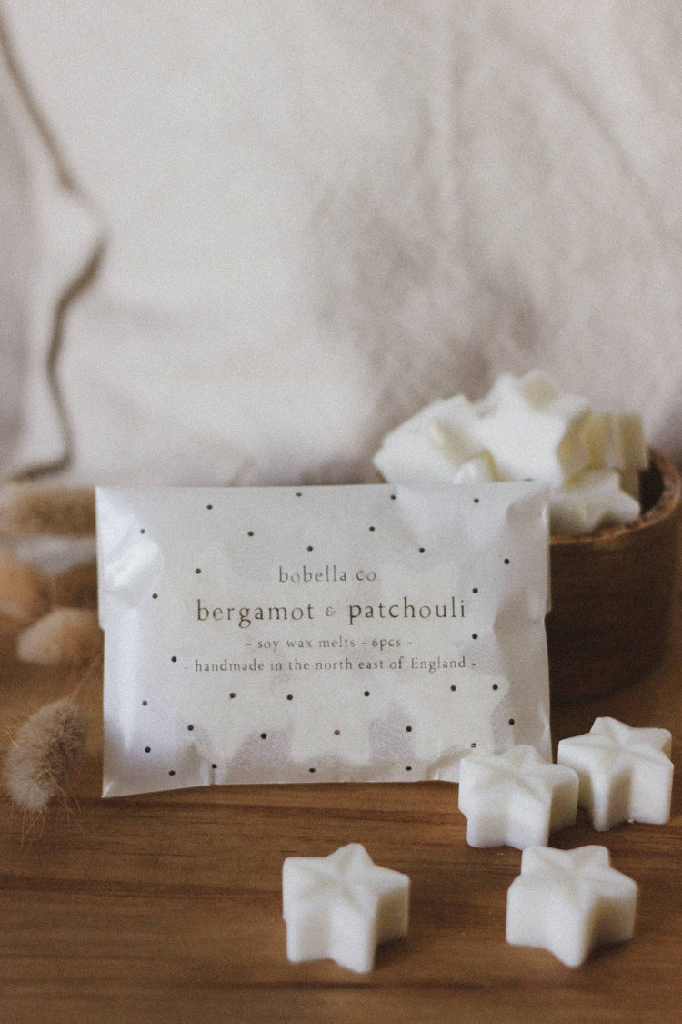 Pack of 6 Botanical Soy Wax Melts. Hand poured in small batches in the North East of England. A decadent chypre composition opening with fresh citrus notes of bergamot and orange leading to a white floral heart dominated by jasmine all resting on a rich, earthy base of patchouli. Top Notes: Bergamot, Orange Middle Notes: Jasmine Base Notes: Patchouli Our Wax is renewably sourced as well as paraben and toxin-free. It binds beautifully with fragrance oil and when heated in your wax warmer, it burns at a lower temperature than other waxes on the market, allowing for a cleaner, longer-burning scent. All packaging is eco friendly and plastic free.