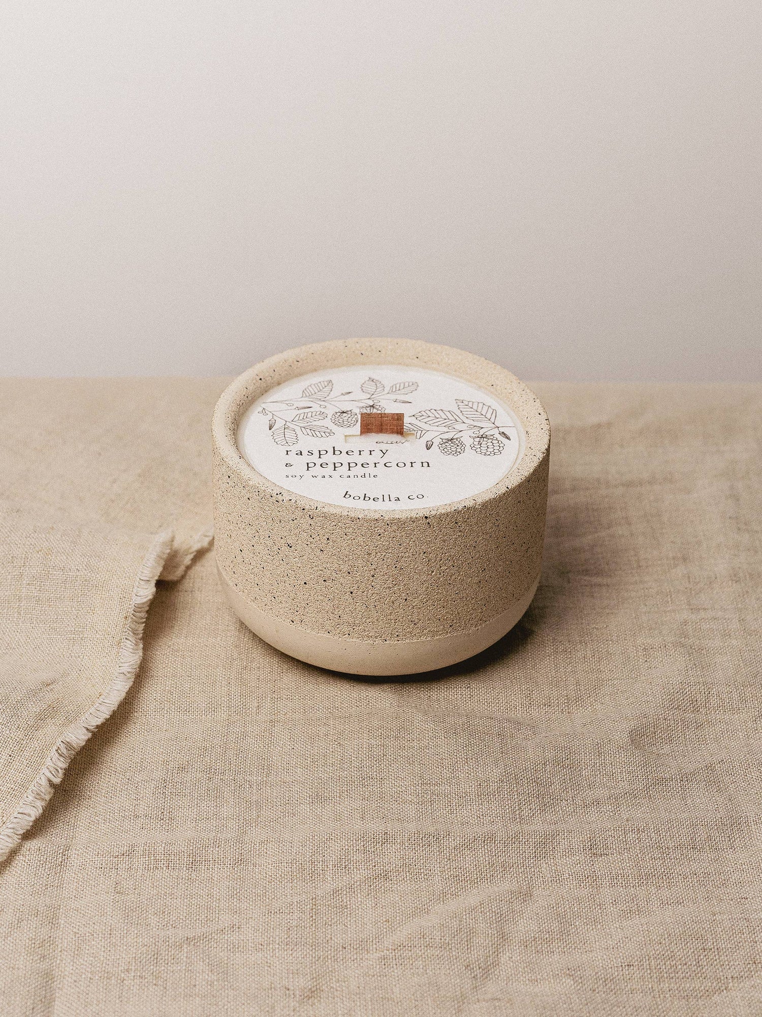A beautiful botanical soy wax candle in the fragrance 'Raspberry & Peppercorn'. Hand poured in small batches in the North East of England. A sophisticated fragrance with notes of fresh raspberries & cherries warmed with pink and black peppercorns, intertwined with creamy musks. Top Notes: Raspberry, Black Pepper, Pink Pepper, Rose Heart Notes: White flowers, Jasmine, Vetiver Base Notes: Musk, Amber - Handcast Vessel - Each of our vessels are hand-cast to create a calming, minimal design.Â