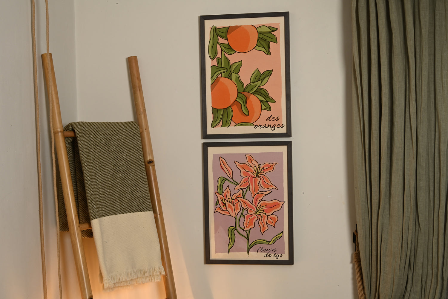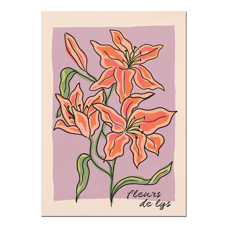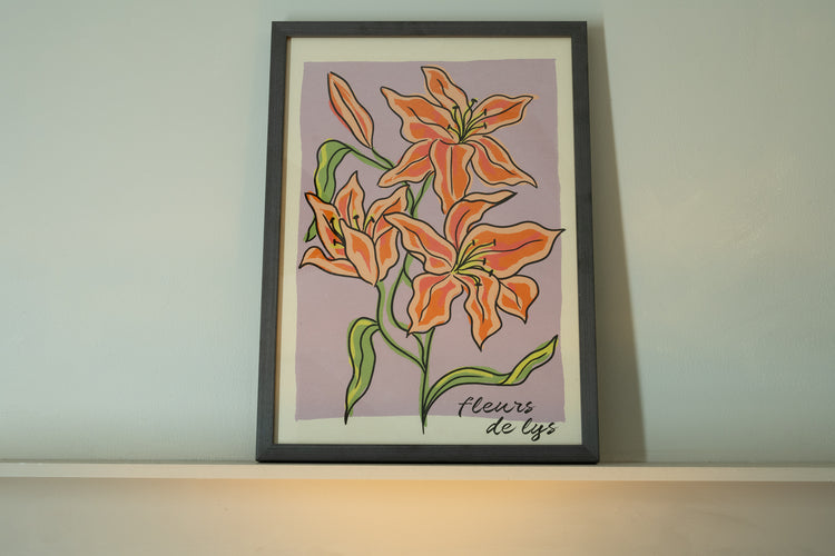 Add colour to your space with our Fleurs des Lys Print, a vibrant and fun art piece. Paired well with the Des Oranges Print.