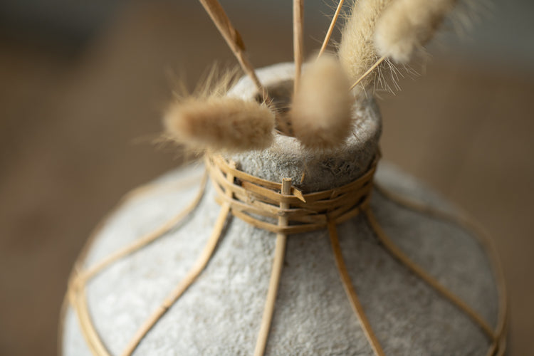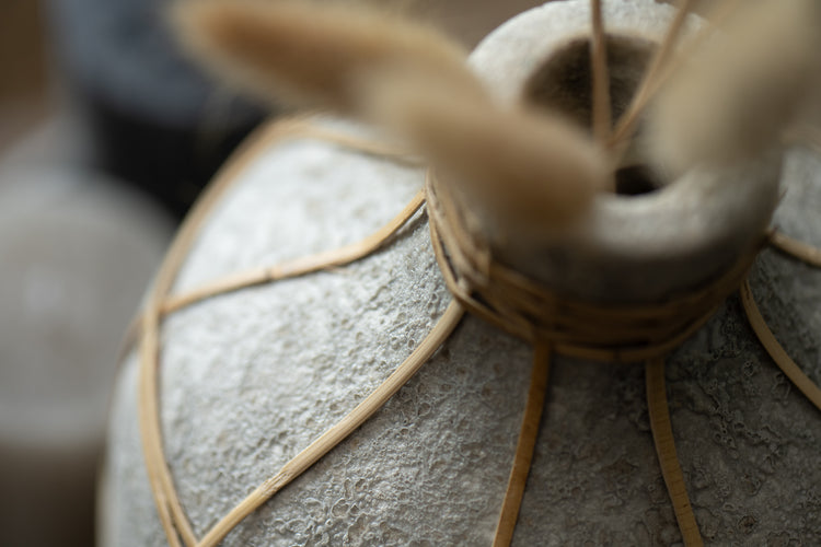 Add a unique bohemian touch to your decor with the Whoopy Vase. This stunning vase is crafted from natural materials and features a distinctive design that effortlessly blends rustic charm with modern aesthetics. Perfect for dried flower arrangements, or as a standalone statement piece.